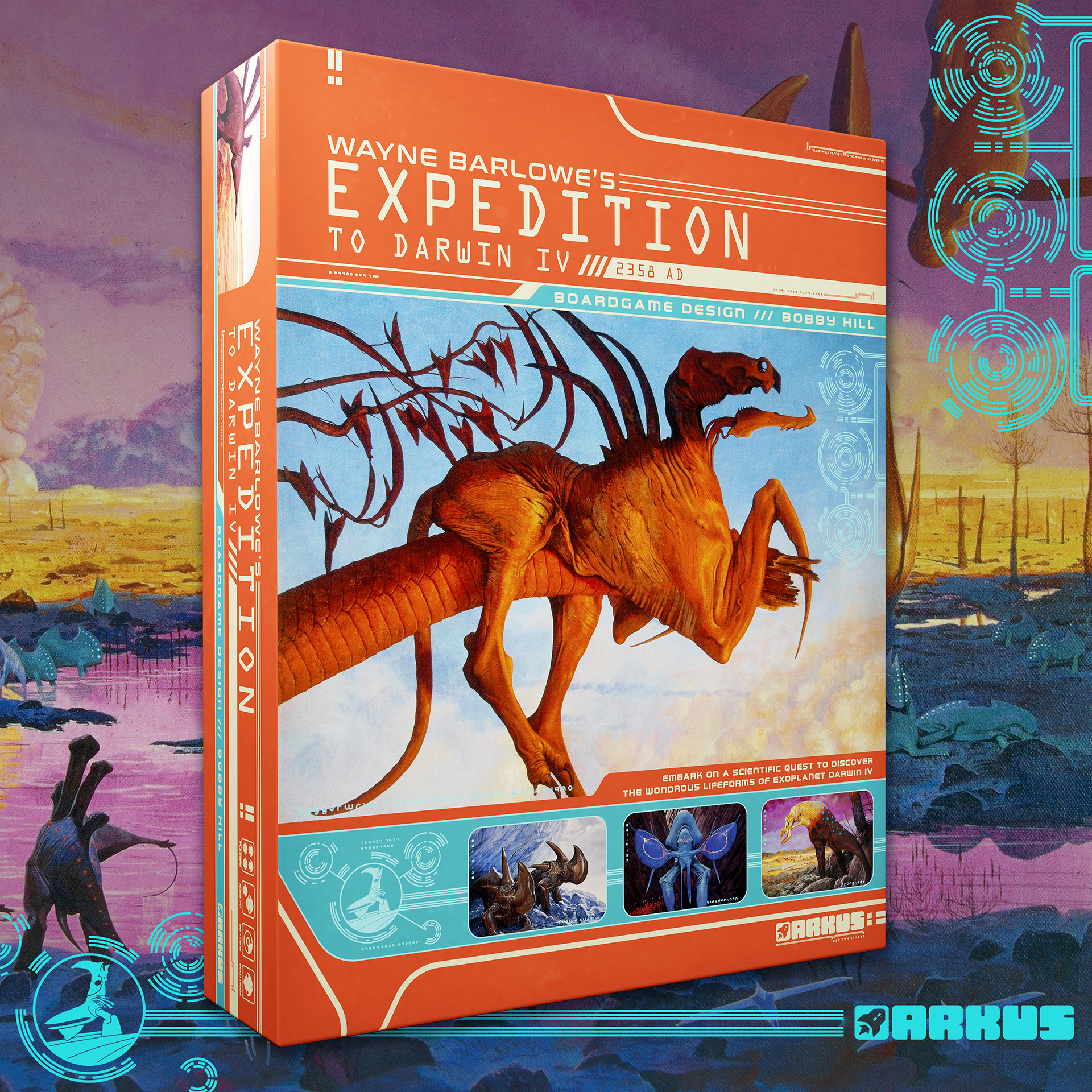 Based on Wayne Barlowe's beautifully illustrated book "Expedition", in Expedition To Darwin IV players take on the role of human scientists in the year 2358 AD, exploring the alien world Darwin IV in search of new life. Piloting their hovercones across different biomes, scientists will locate and study the unique indigenous species of Darwin IV in an effort to learn more about the planet's strange and wondrous inhabitants. With the data they've collected, each scientist will share their work with their benign custodians, the Yma, earning them reputation.